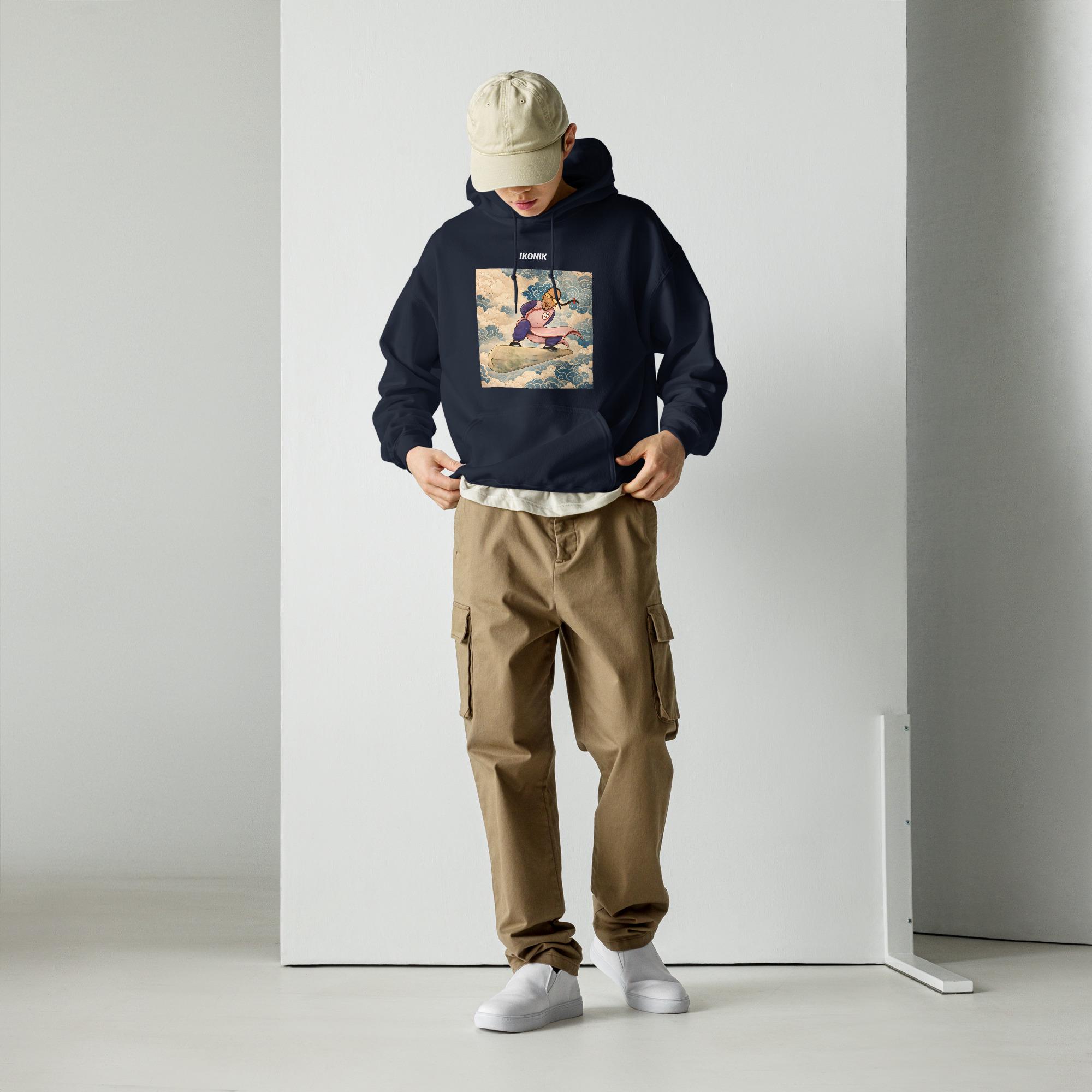 Stand out with this unique anime-inspired hoodie featuring a powerful warrior floating above the clouds. The design blends traditional Asian art elements with modern streetwear aesthetics, creating a bold and expressive look. Perfect for anime fans, urban fashion lovers, and anyone who wants a statement hoodie that feels dynamic, artistic, and fearless.