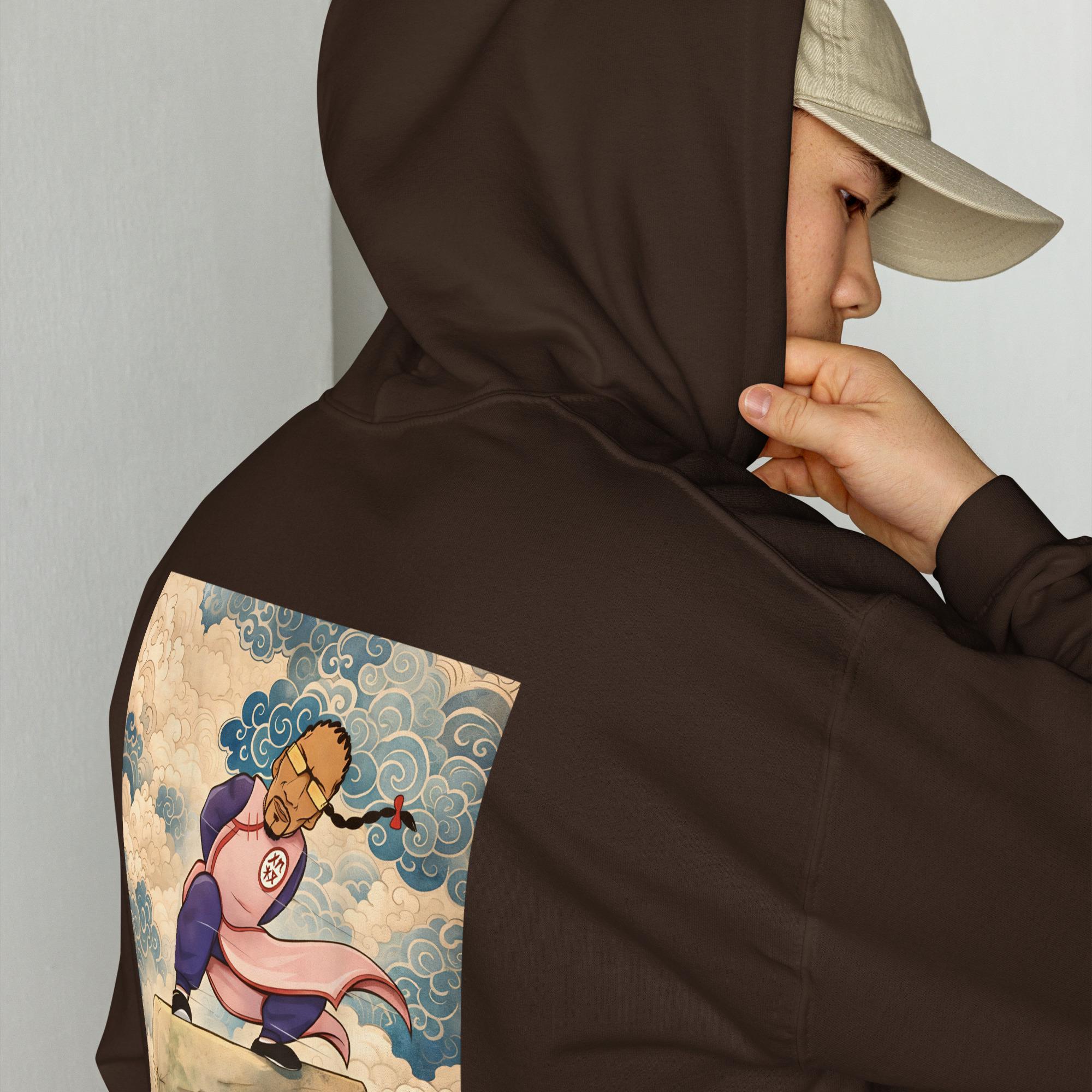 Stand out with this unique anime-inspired hoodie featuring a powerful warrior floating above the clouds. The design blends traditional Asian art elements with modern streetwear aesthetics, creating a bold and expressive look. Perfect for anime fans, urban fashion lovers, and anyone who wants a statement hoodie that feels dynamic, artistic, and fearless.