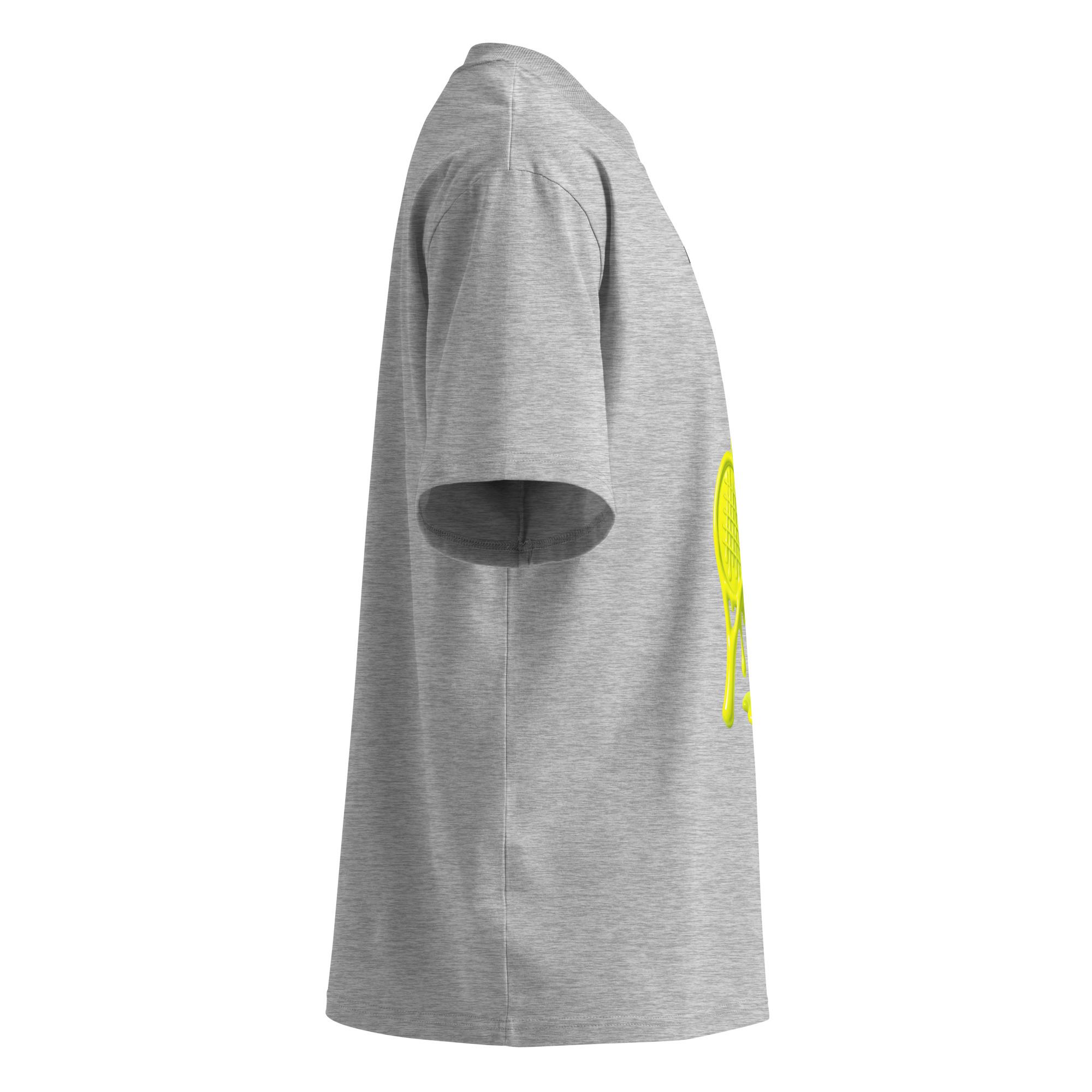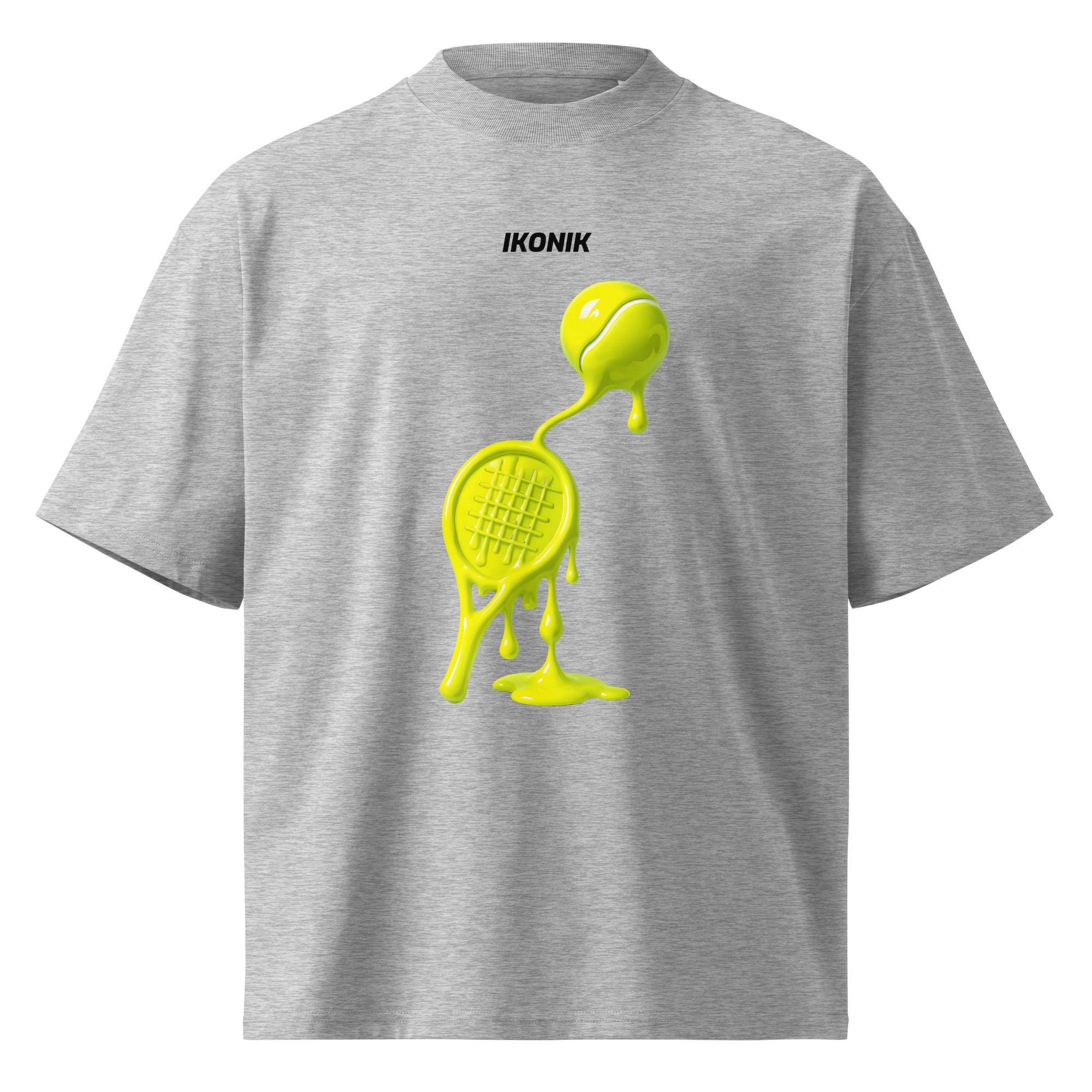 Description Upgrade your everyday streetwear with this oversized t-shirt featuring a bold melting tennis graphic. Crafted from 100% organic combed ring-spun cotton, this tee combines comfort, sustainability, and modern design. The relaxed oversized fit, dropped shoulders, and wide collar make it perfect for casual wear, layering, or statement outfits. A unique sports-inspired artwork for those who like clean design with a creative edge.