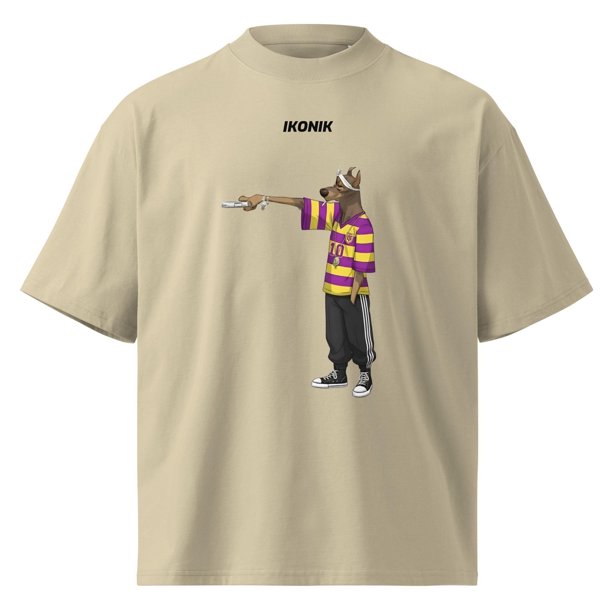 Make a bold statement with this oversized graphic t-shirt featuring an urban, street-inspired dog character with strong attitude and hip-hop energy. Designed for modern streetwear lovers, this tee blends edgy illustration with a relaxed oversized fit, perfect for everyday outfits, festivals, or standout casual looks. Crafted from premium organic cotton, it delivers comfort, durability, and effortless style.