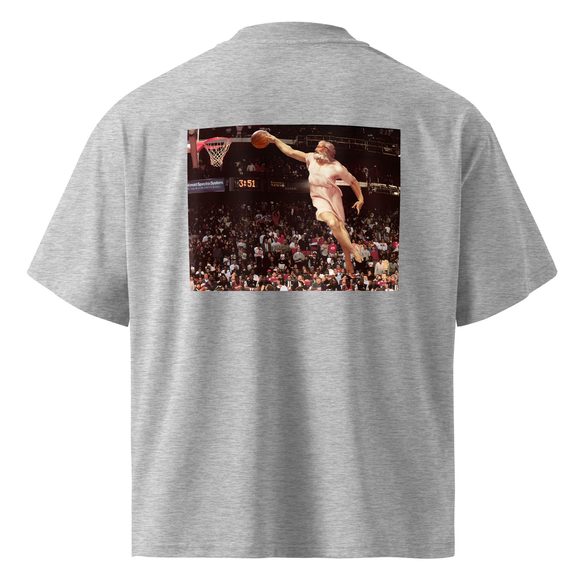 Description Upgrade your streetwear with this oversized t-shirt featuring a powerful graphic of Zeus mid-dunk in a modern arena. Blending Greek mythology with basketball culture, this design delivers bold energy, movement, and attitude. Crafted from premium organic cotton with a relaxed oversized fit, it’s perfect for everyday wear, sports-inspired outfits, or statement looks that stand out on and off the court.