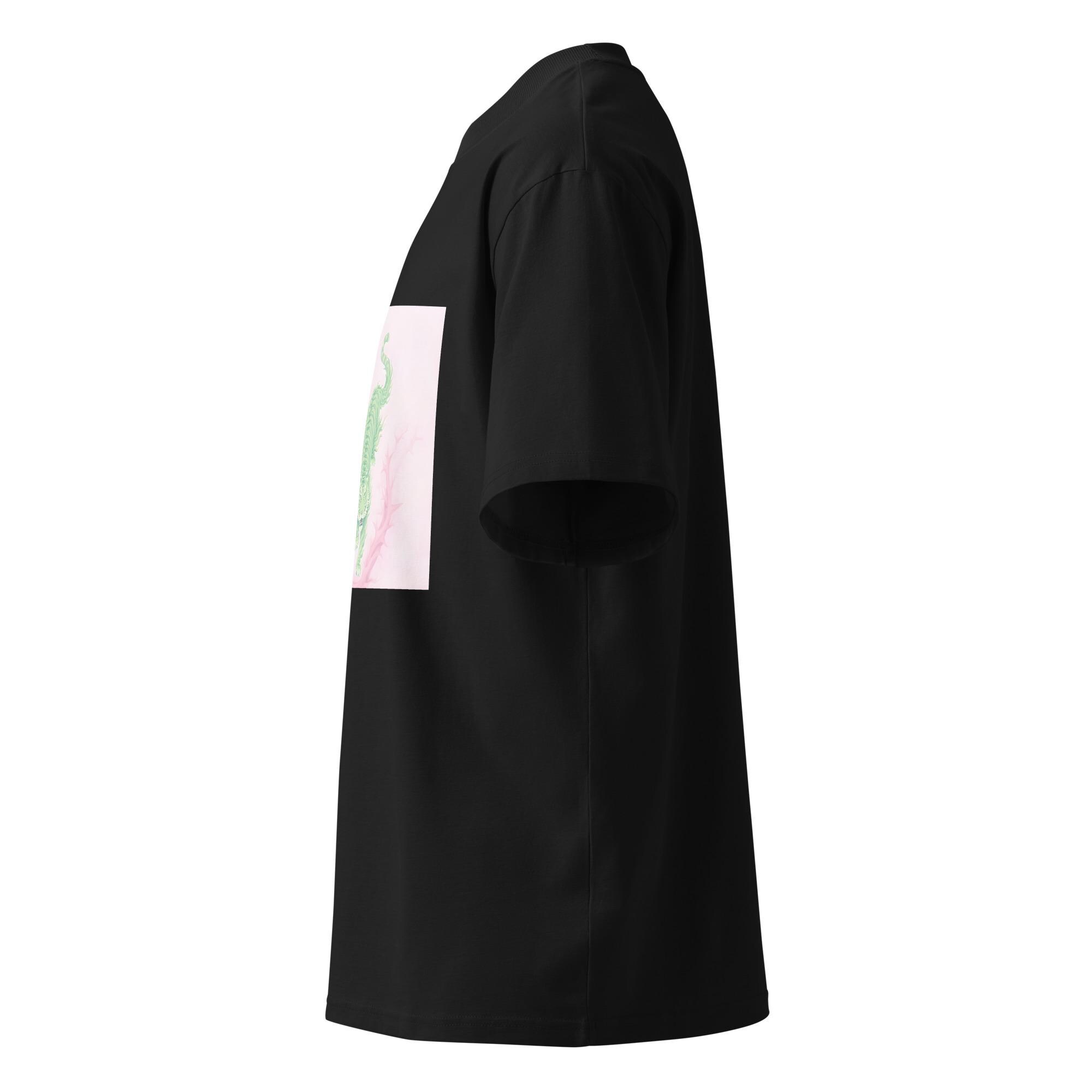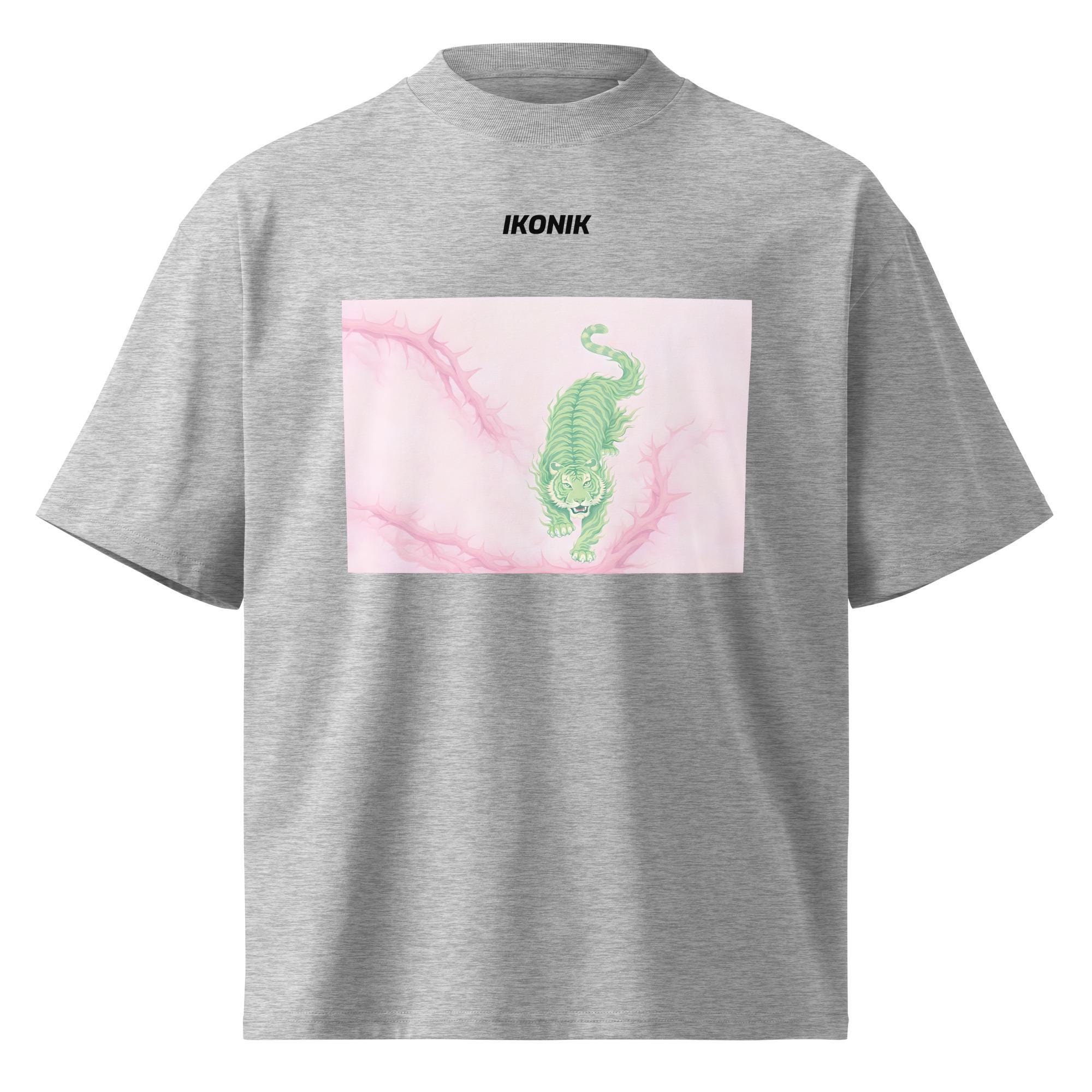 Stand out with this oversized high-neck T-shirt featuring a mystical green tiger emerging through a dreamy, ethereal atmosphere. Symbolizing strength, courage, and focus, this design blends Asian-inspired aesthetics with a modern, artistic streetwear vibe.
