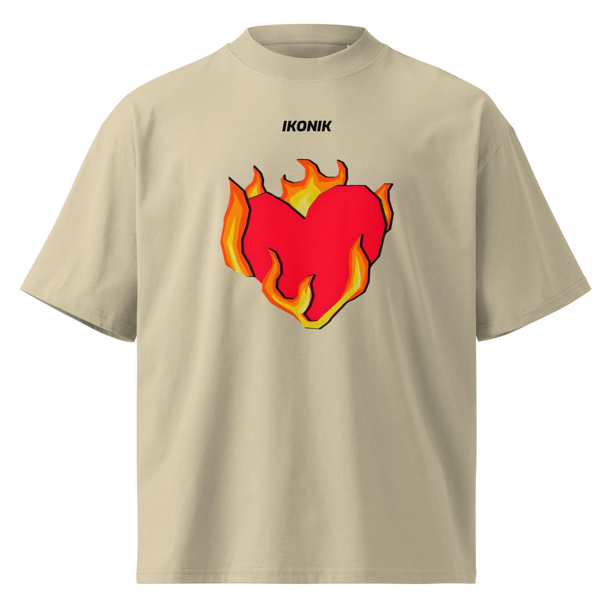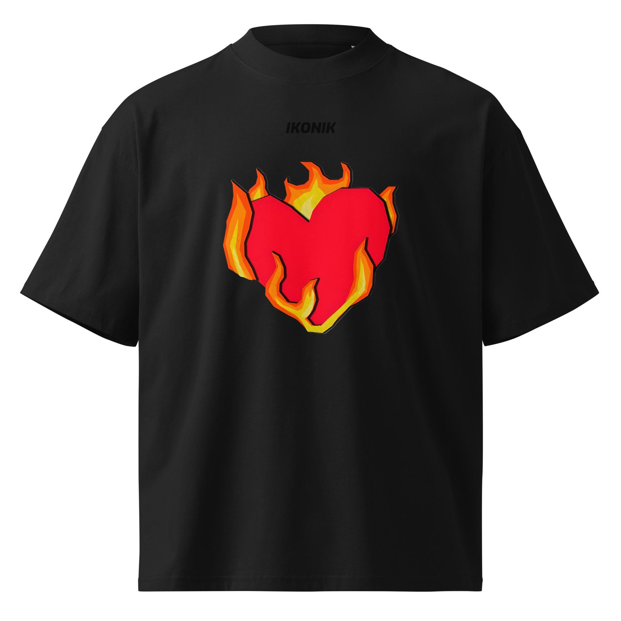 Turn up the heat with this oversized high-neck T-shirt featuring a bold flaming heart graphic. Symbolizing passion, intensity, and fearless emotion, this design blends expressive artwork with a clean, modern streetwear aesthetic—perfect for making a strong visual statement.