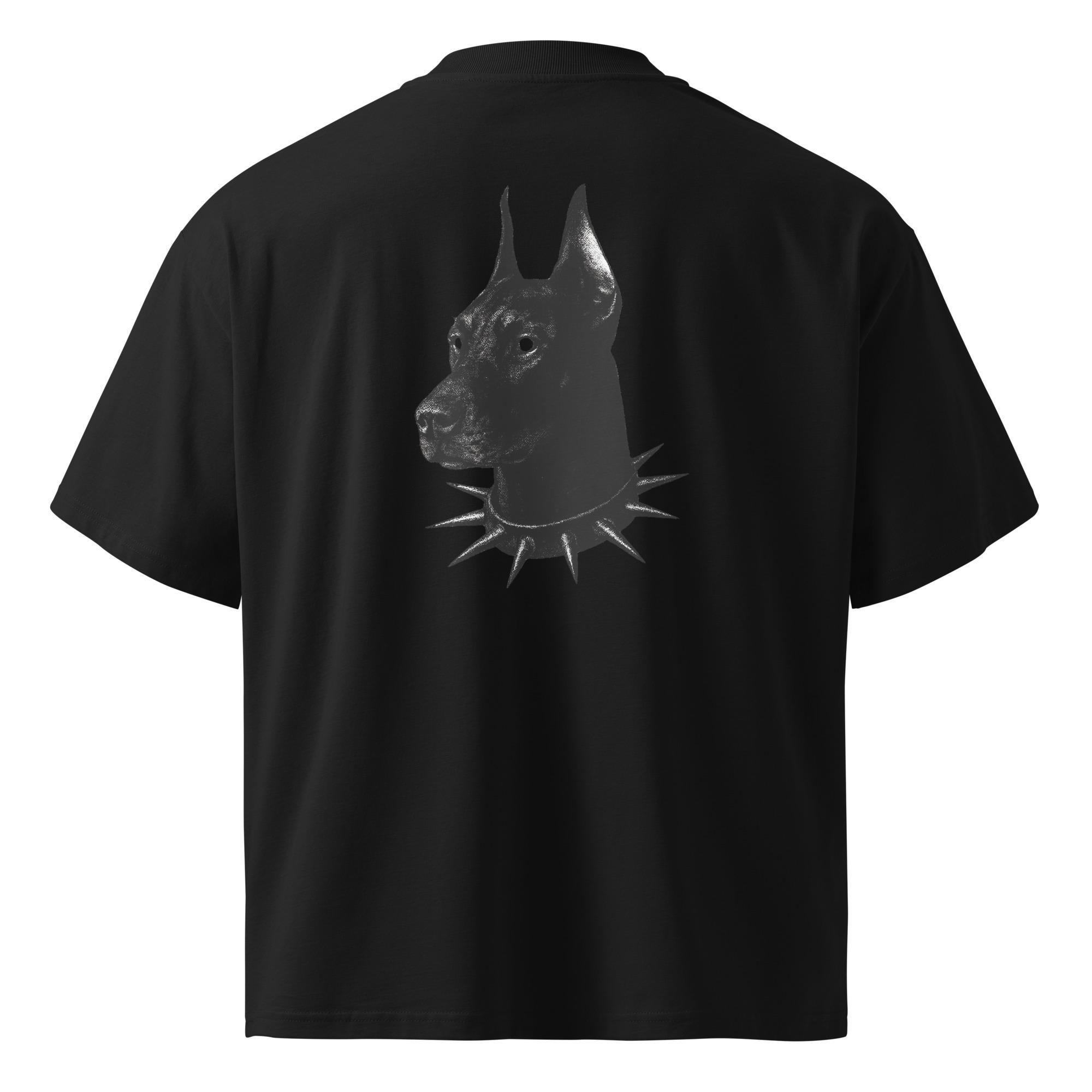 Elevate your streetwear with this oversized high-neck T-shirt featuring a powerful Doberman portrait with a spiked collar. Dark, minimalist, and intense, this design blends gothic aesthetics with modern urban style—perfect for those who appreciate bold animal symbolism and edgy fashion.