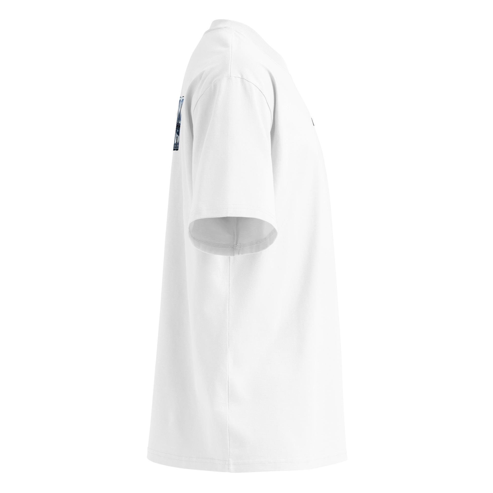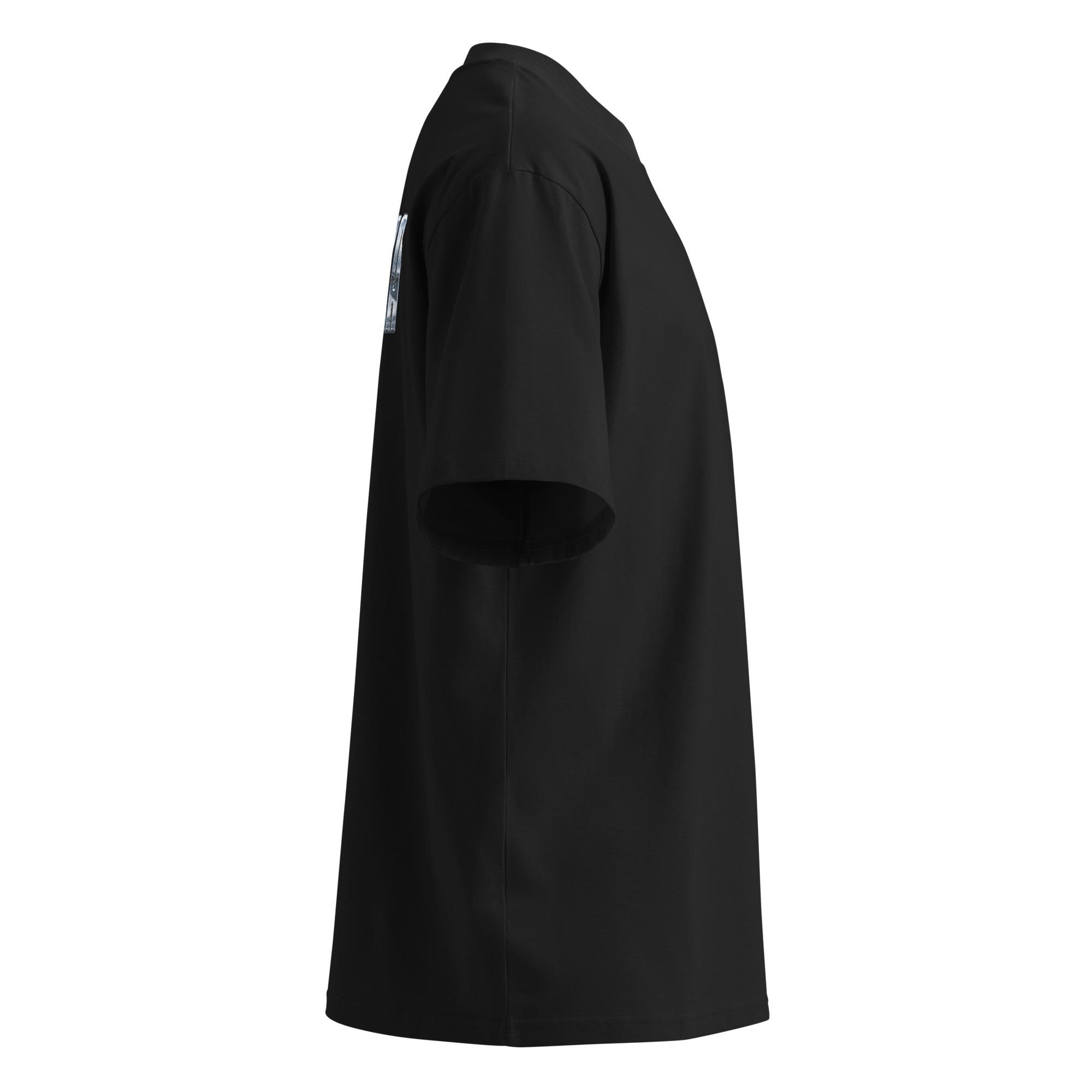 Made from 100% organic combed ring-spun cotton, this heavyweight premium T-shirt offers a soft hand feel with a structured, high-quality finish. Designed with an oversized fit, dropped shoulders, and a wide ribbed high-neck collar, it blends comfort with a contemporary streetwear silhouette. Fabric weight: 5.9 oz/yd² (200 g/m²).