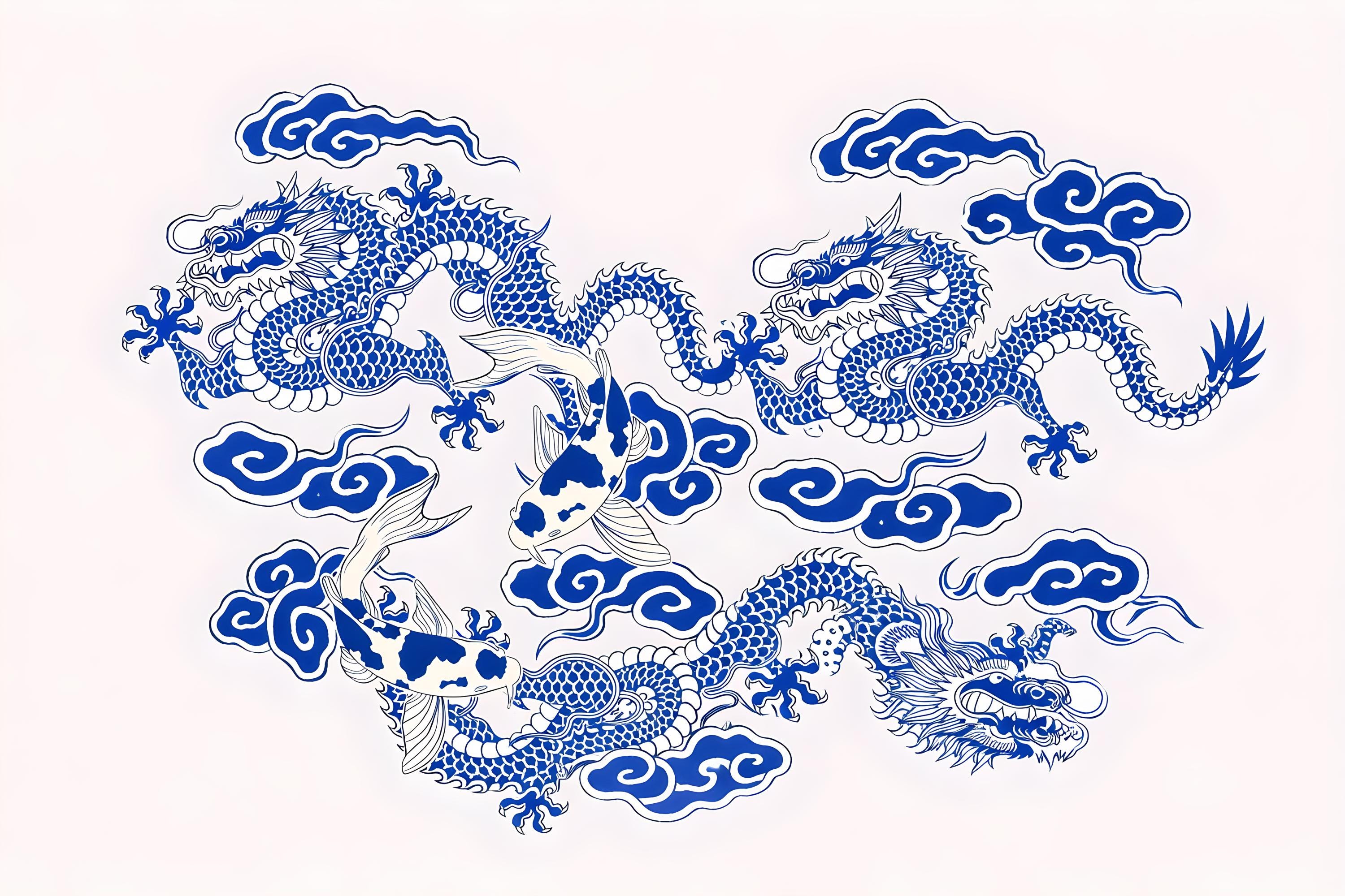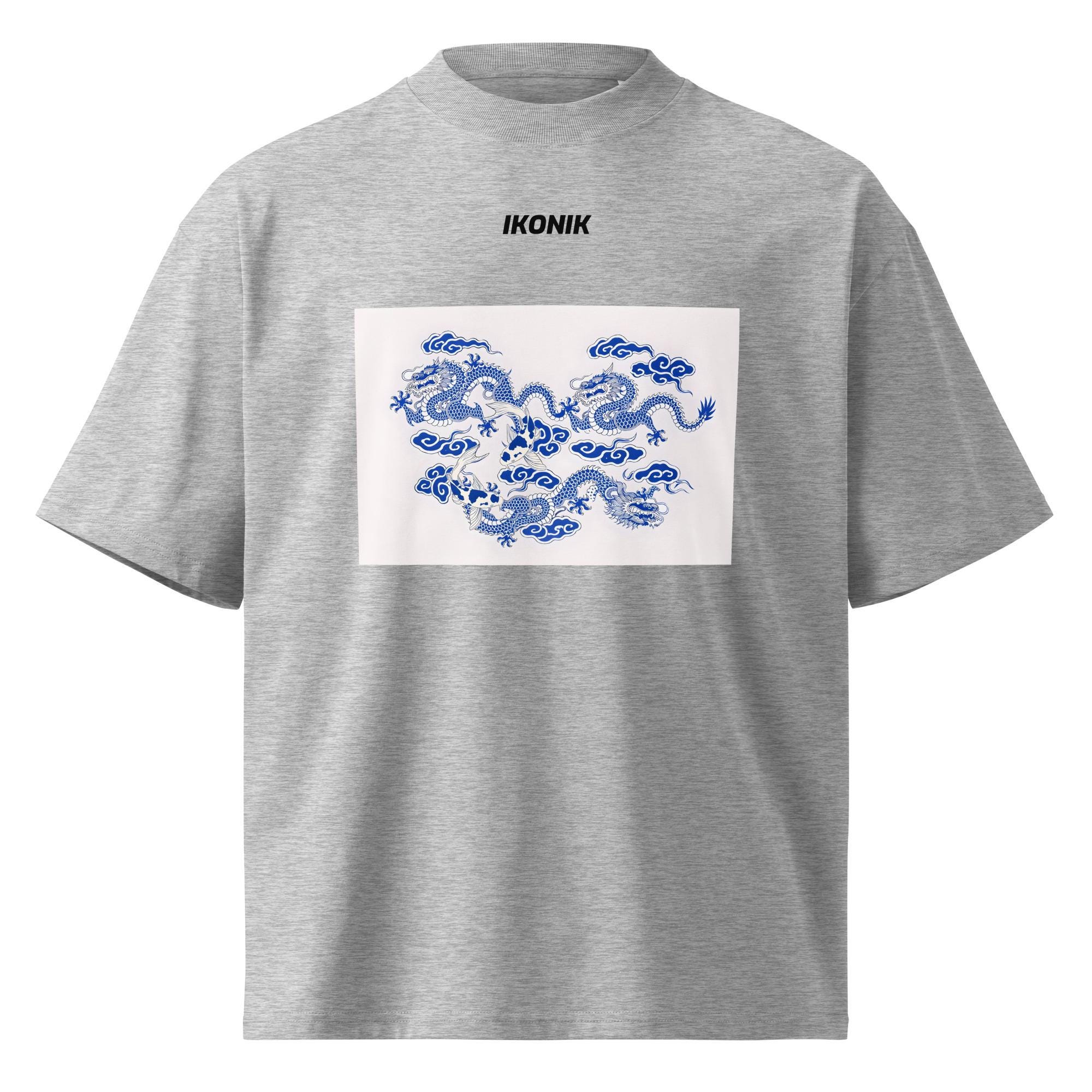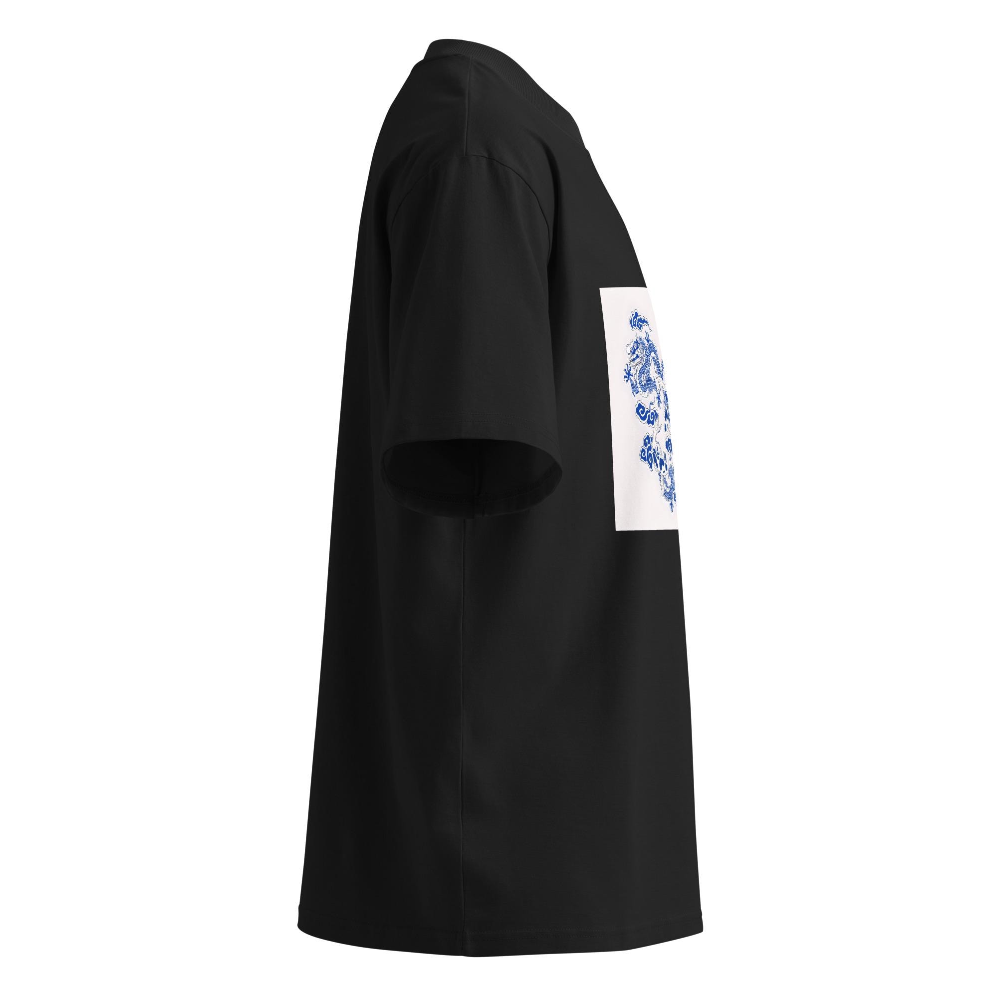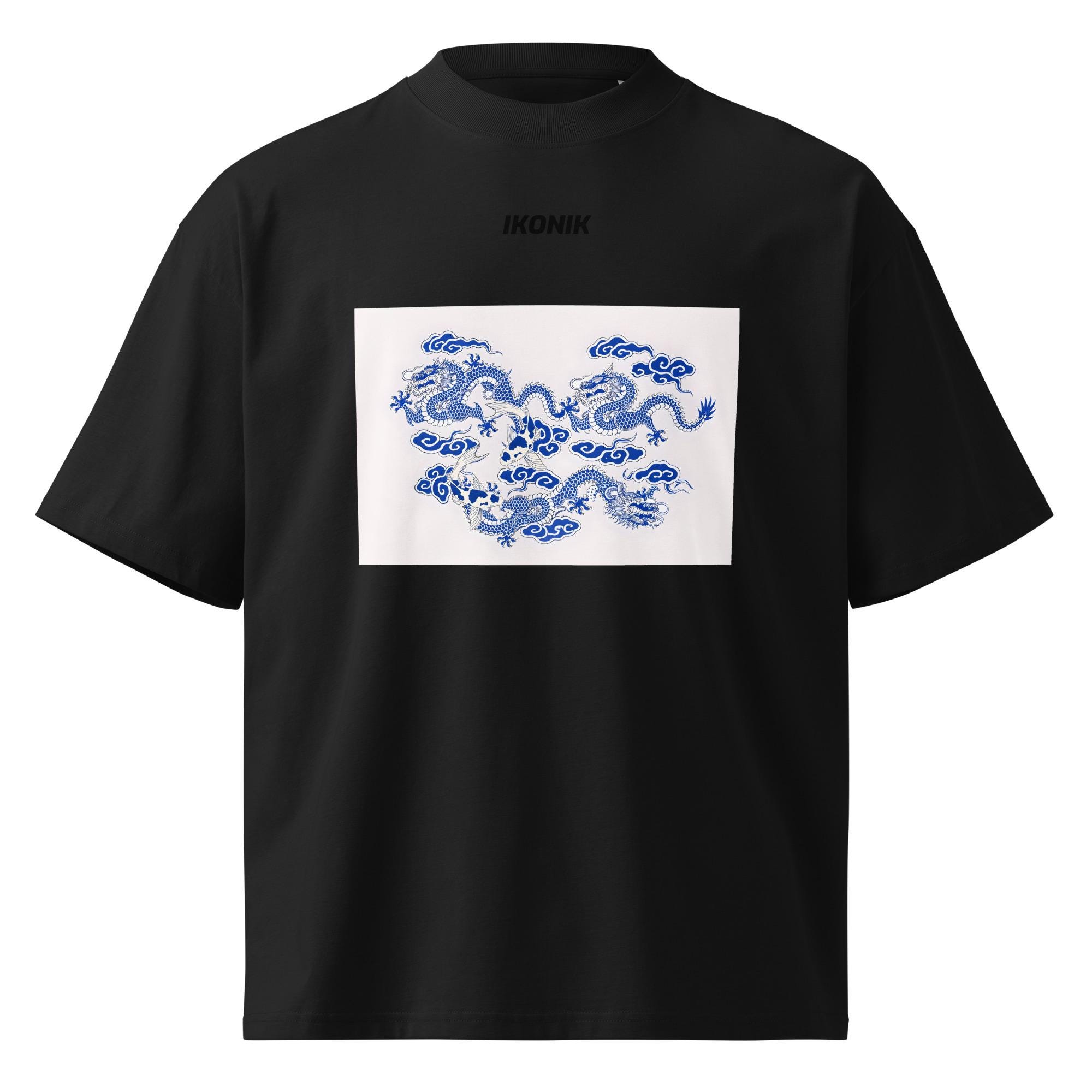 Traditional blue and white dragon and koi fish illustration inspired by Japanese and Chinese art. Symbol of strength, balance, and perseverance with a clean, timeless aesthetic. Unisex fit, high-quality print, perfect for streetwear or minimalist outfits.