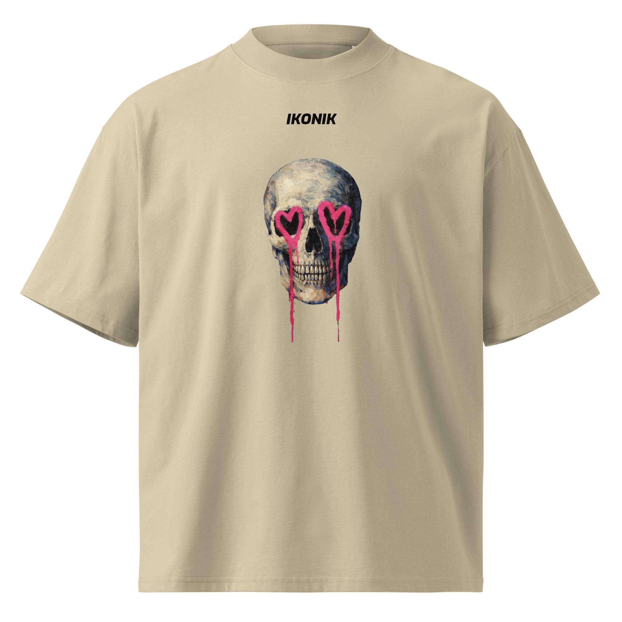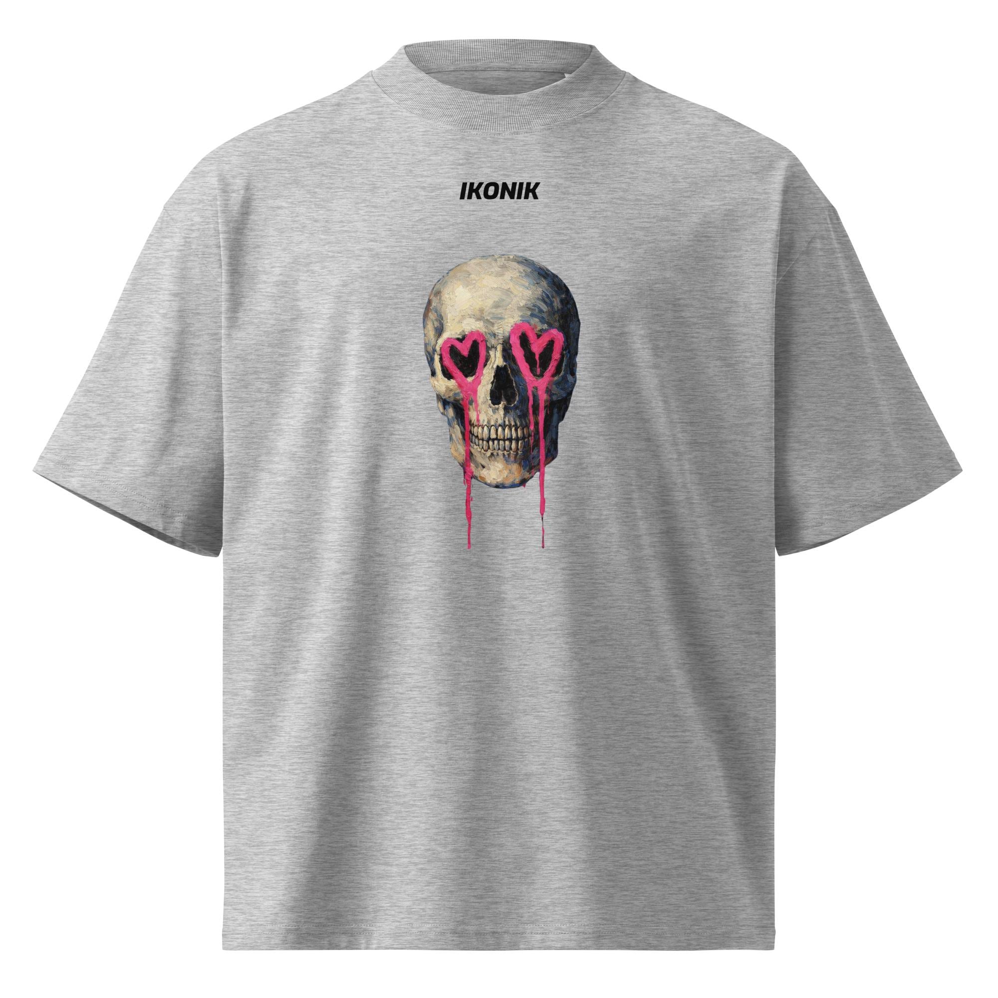 Description: Expressive skull artwork with hand-painted textures and dripping heart-shaped eyes. This piece blends dark tones with vivid pink accents, creating a powerful contrast between emotion and edge. A bold, artistic design for those who like statement graphics with attitude.