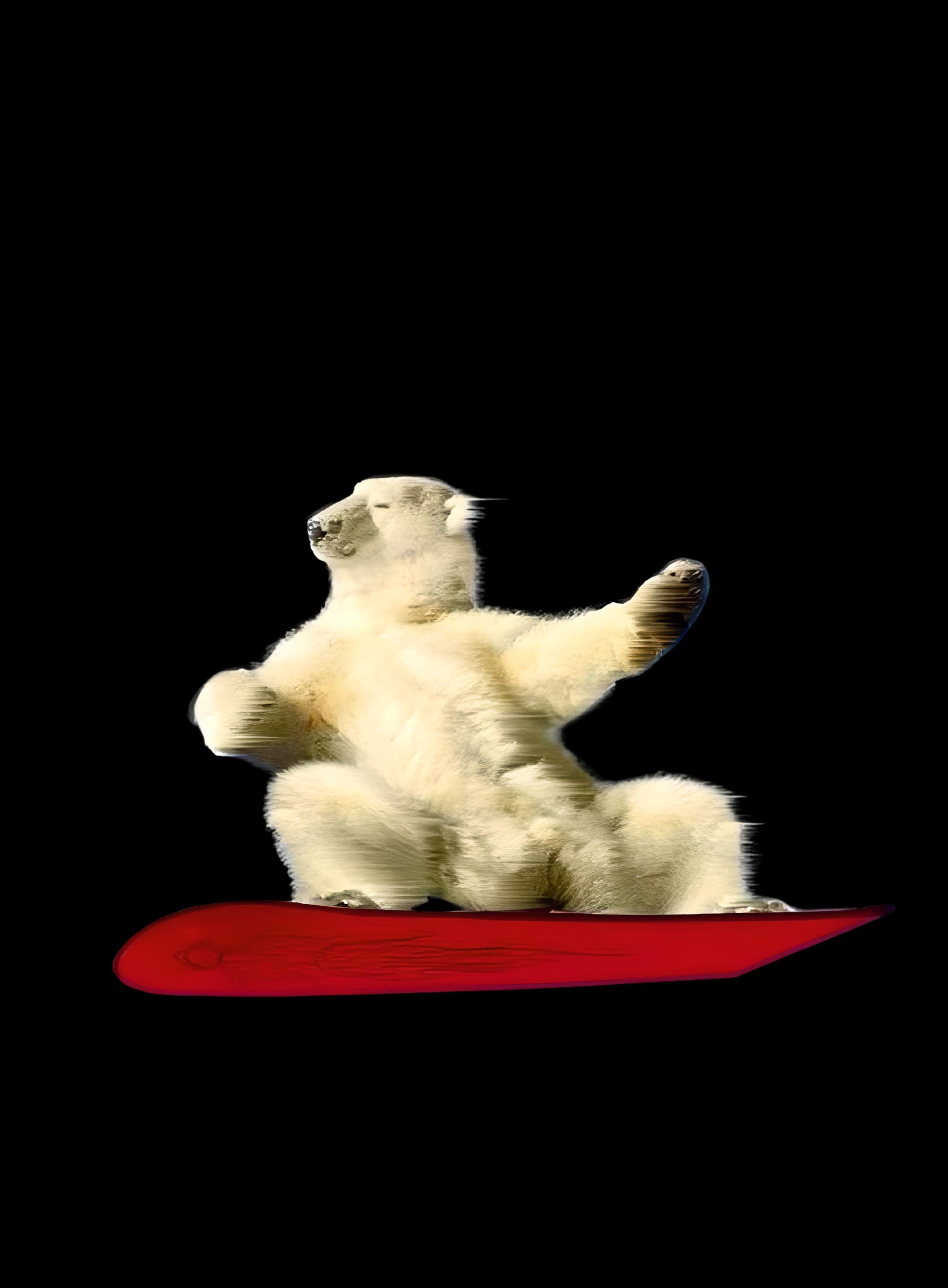 A playful and surreal illustration of a polar bear riding in motion, bringing humor, contrast, and movement into a clean visual composition. This design mixes softness with bold energy, making it a perfect statement piece for creative streetwear and modern casual fits.
