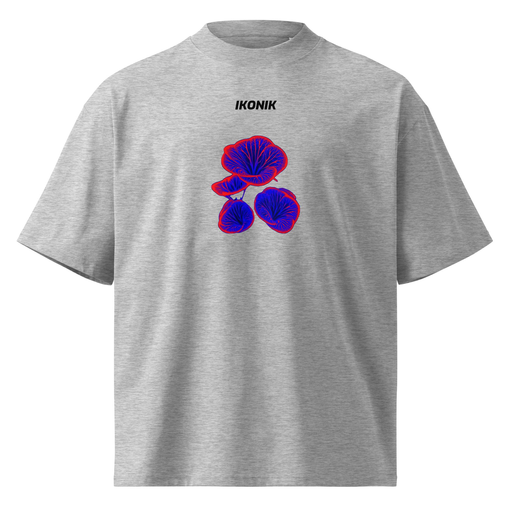 Description: A vivid abstract floral design in electric blue and red tones, inspired by psychedelic visuals and digital art aesthetics. This piece balances organic forms with intense color contrast, creating a hypnotic and modern look.