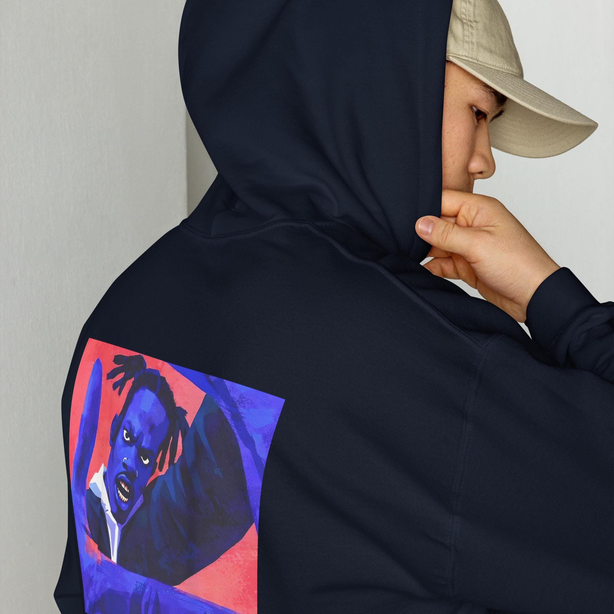 The IKONIK Blue Rage Hoodie features a powerful abstract illustration with intense expression, designed to channel raw emotion, strength, and modern street energy.