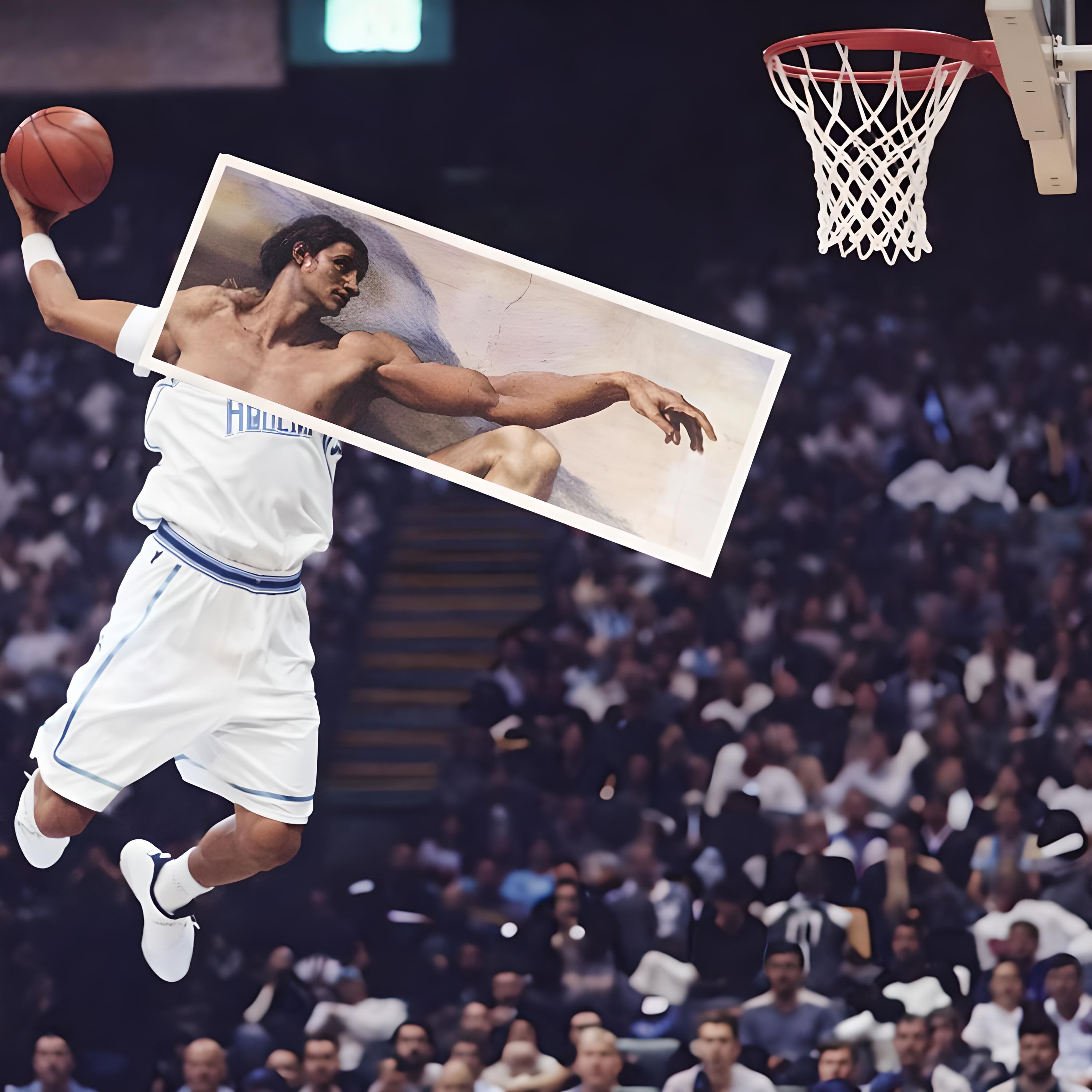 This IKONIK graphic t-shirt blends basketball culture with classical art inspiration, creating a bold and surreal visual moment. The design reimagines an iconic gesture through a modern sports lens, turning movement, power, and creativity into a single statement piece.