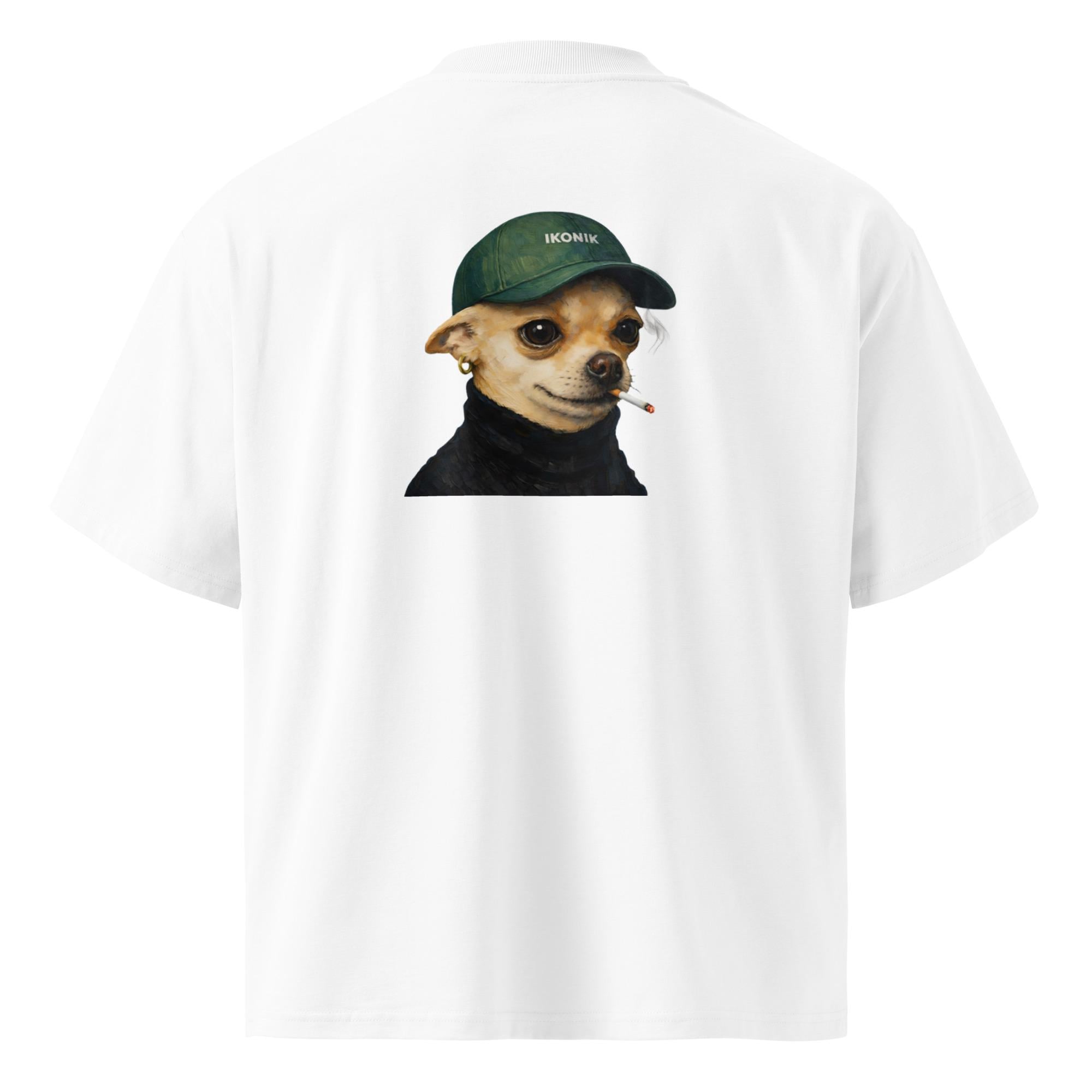 The IKONIK Smoking Chihuahua graphic t-shirt features a bold illustrated dog character with strong attitude and personality. A playful yet edgy design that blends animal art with modern streetwear aesthetics, made to stand out instantly.