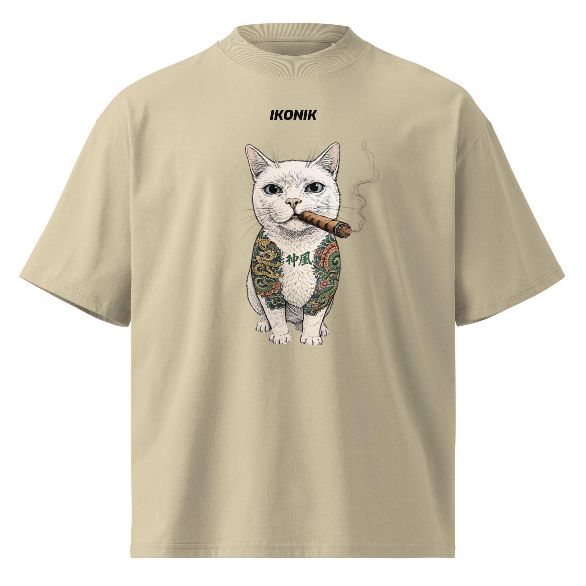 The IKONIK Tattoo Cat graphic t-shirt features a bold illustrated white cat with traditional Japanese-style tattoos and a strong, rebellious attitude. A unique fusion of animal art, Japanese tattoo aesthetics, and modern streetwear, designed to stand out instantly.